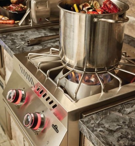 Wokken of roerbakken is uiterst populair geworden. De gerechten die je met je wok bereidt, zijn niet alleen heel lekker en gezond, maar ze zijn ook binnen een mum van tijd klaar. Als je van wokken houdt, is deze ingebouwde Napoleon power-wokbrander onmisbaar in je buitenkeuken. De Napoleon inbouw power-wokbrander is voorzien van elektrische vonkontsteking. De brander zelf werkt op flessengas.