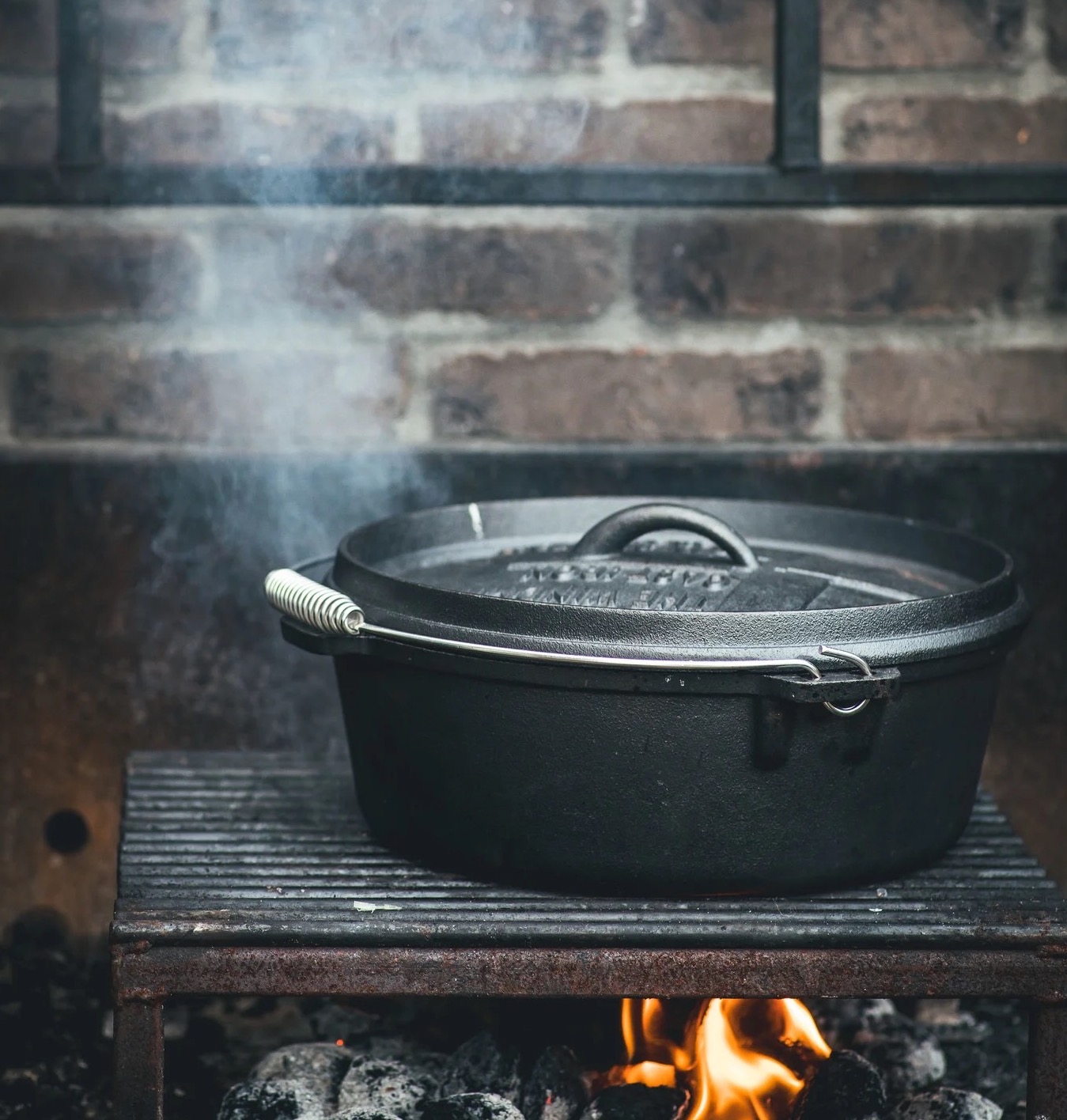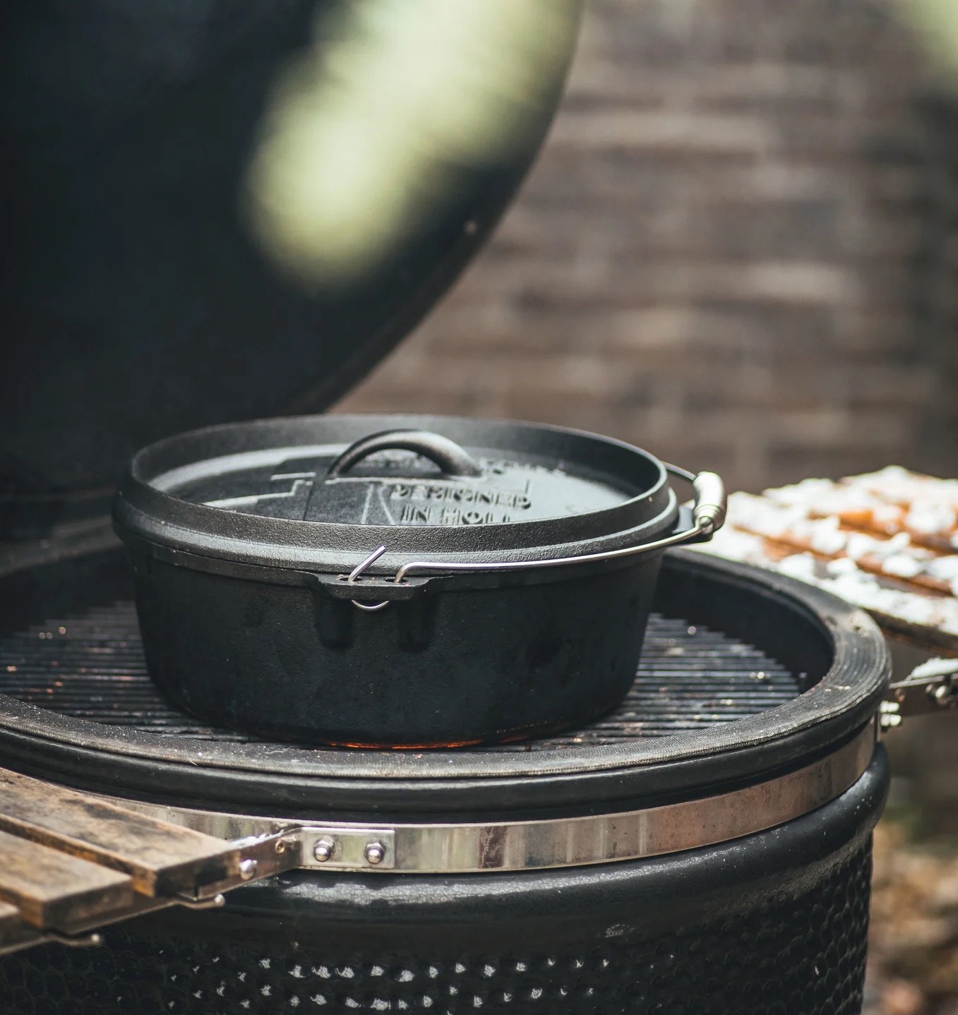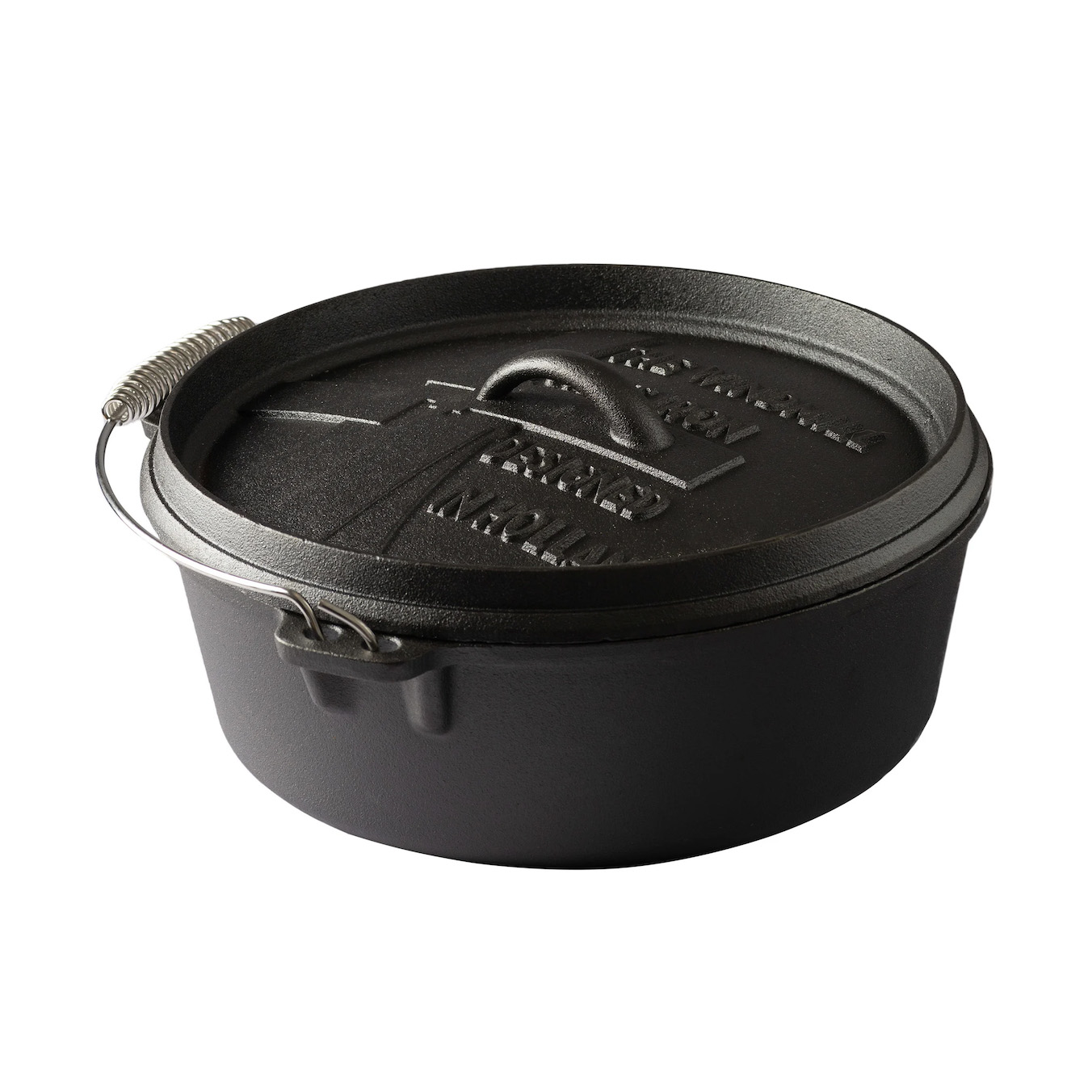 The Dutch Oven. Where it all began. The rock solid cast iron skillet that American colonists were already cooking with around 1800. In recent years it has fallen out of favor, but is now totally hot again! So is this 6-quart Dutch Oven. A real all-rounder and a welcome guest at every party, in every kitchen and on every open fire. Experience it yourself!