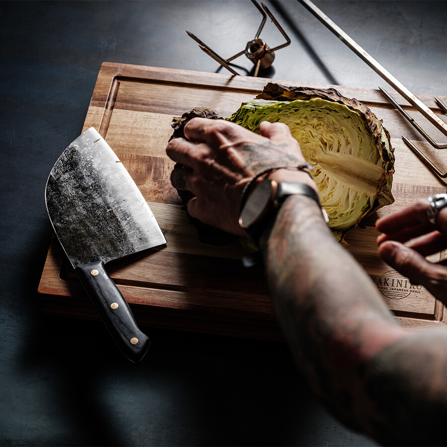 Met de echte Yakiniku bijl hak je moeiteloos grote stukken vlees doormidden. Dit is gereedschap voor de echte mastergriller. Met deze bijl steel je gegarandeerd de show op elke grillavond. De stoere uitstraling en het gebruik van de beste materialen maken het een must-have. Stukken vlees doorhakken was nog nooit zo eenvoudig.
