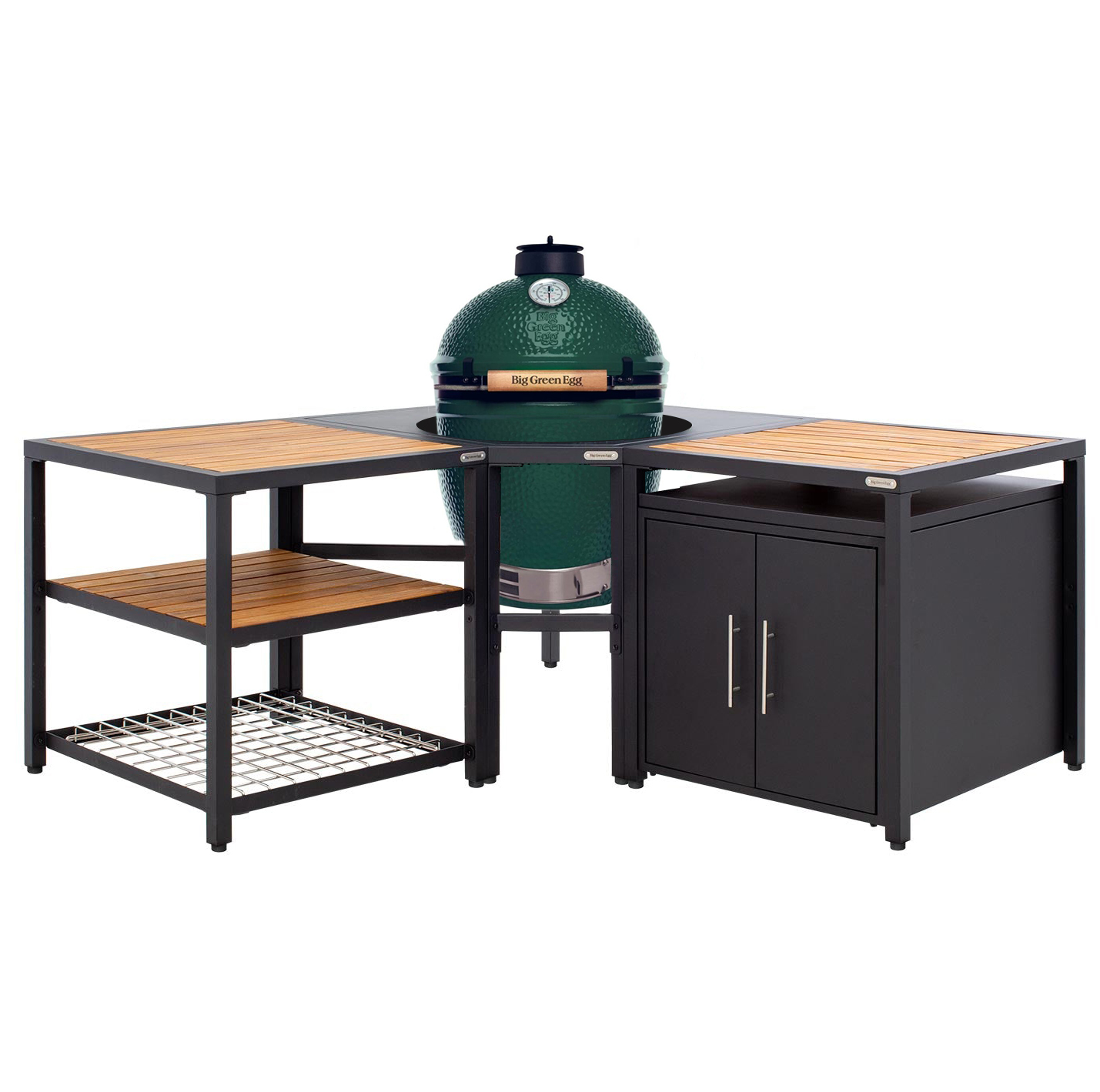 Het modulaire tafelsysteem van Big Green Egg is de ideale buitenkeuken opstelling. Nog meer kookplezier en bovendien veel meer werkruimte. Om het je gemakkelijk te maken hebben we bij BBQ Green Egg Store diverse opstellingen voor je geconfigureerd. Zo hoef je niet zelf aan de slag maar is het modulaire tafelsysteem direct volgens jouw wens samengesteld.
