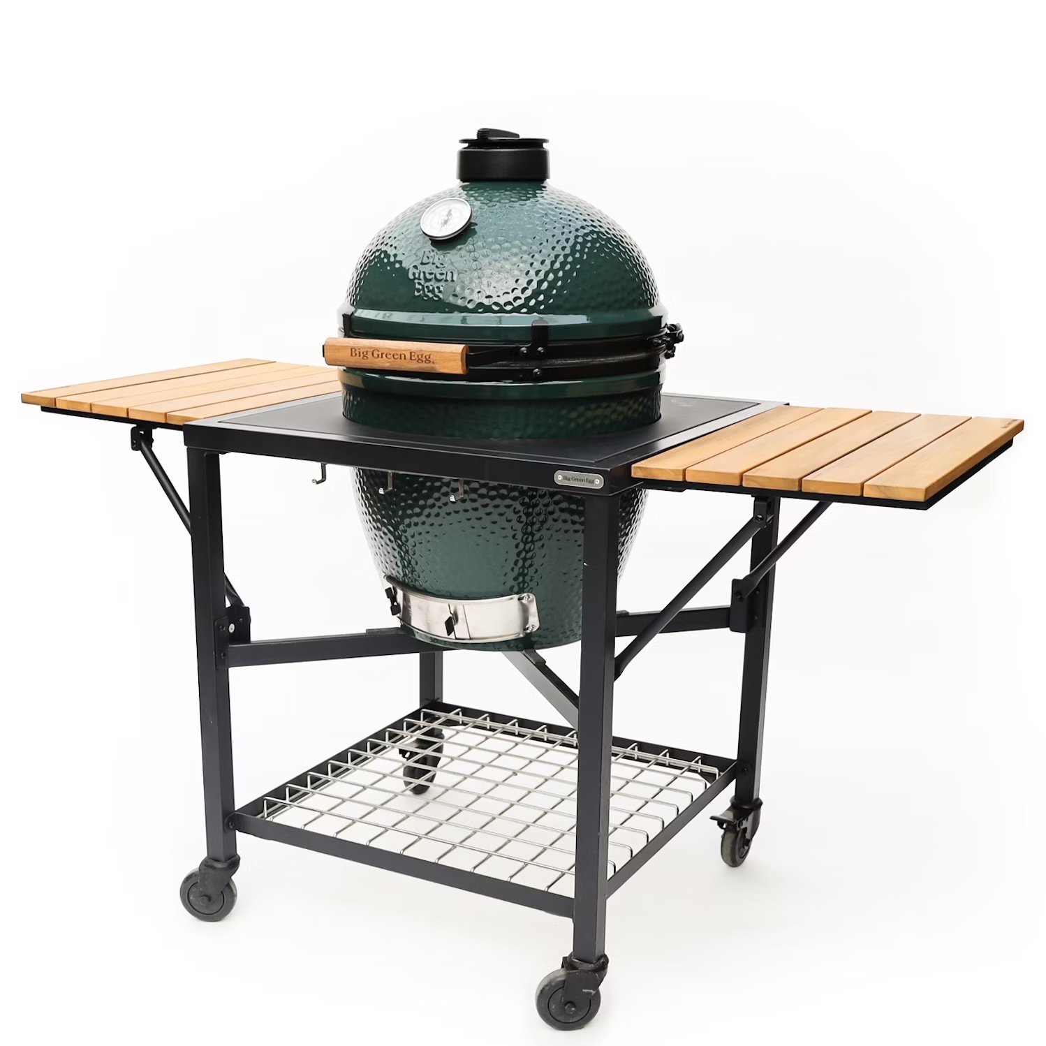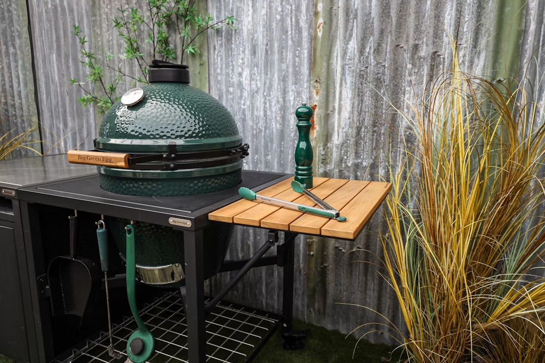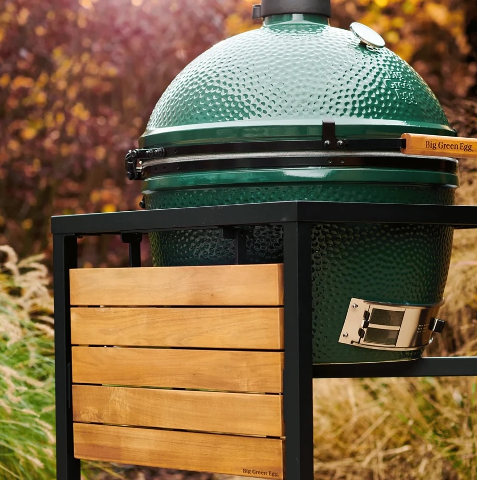Geef je EGG een prominente plek met het Modular EGG Frame – een stijlvolle en ruimtebesparende basis voor jouw Big Green Egg Large. Het duurzame frame van gepoedercoat aluminium is niet alleen een blikvanger, maar ook bijzonder praktisch dankzij de geïntegreerde gereedschapshaken en het stevige RVS-opbergrooster. De twee opklapbare zijtafels van acaciahout bieden volop ruimte om gerechten te bereiden of accessoires neer te leggen. Ben je klaar met barbecueën? Klap de tafels eenvoudig in en je opstelling ziet er meteen weer strak en opgeruimd uit. Dankzij de stevige wielen verrijd je het EGG Frame moeiteloos naar elke gewenste plek in je tuin. Maak het geheel compleet met een duurzame afdekhoes om je set-up optimaal te beschermen tegen weer en wind.