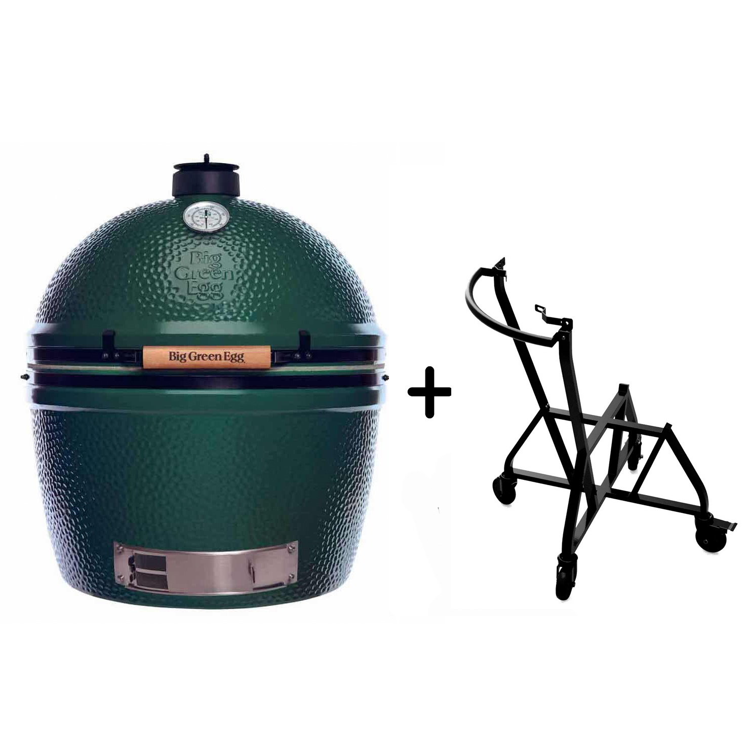 Big Green Egg XXL + geïntegreerd onderstel met nest handler. Combinatiedeal! Het nieuwe geïntegreerde onderstel met nest handler combineert functionaliteit en design. Het onderstel is stevig en je kunt de Big Green Egg moeiteloos verrijden. Zelfs op een oneffen ondergrond. Voordeel is dat je de oude Nest Handler dus niet meer los hoeft te bestellen, die zit namelijk geïntegreerd in dit onderstel. Het nieuwe onderstel voor de Big Green Egg XXL is gemaakt van gepoedercoat staal en heeft daardoor een langere levensduur.