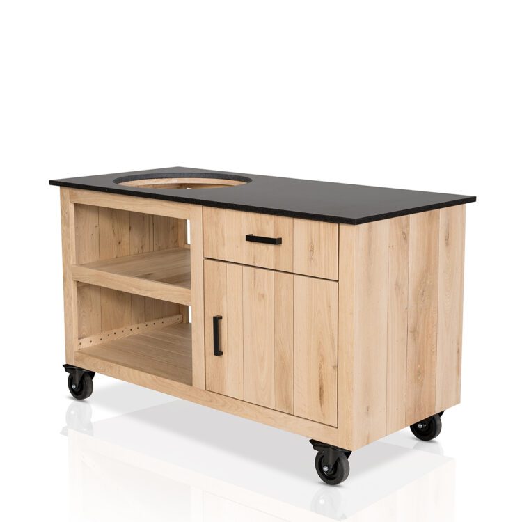 Het frame van de Fraaii Tafel Bamboo Teak Oil Rhombus Storage is gemaakt van zwart gepoedercoat staal en uitermate geschikt om gedurende alle seizoenen buiten te gebruiken. De houten inleg is gemaakt van bamboe hout met rhombus afwerking. Op het Dekton werkblad heb je voldoende ruimte om gerechten te bereiden of bbq accessoires neer te leggen. De tafel biedt voldoende opbergruimte en de 4 zwenkwielen zorgen ervoor dat je de hem gemakkelijk kunt verrijden naar iedere gewenste plek in de tuin. De tafel is standaard uitgevoerd met mat zwarte handgrepen.