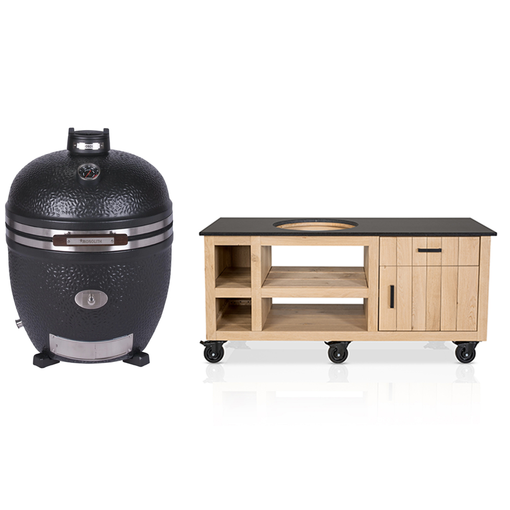 Combinatiedeal voor de Monolith Avantgarde.66 + Fraaii Tafel Eikenhout Classic II. Dit prachtige designmeubel is gemaakt van robuust eikenhout en heeft een Dekton werkblad. Het werkblad biedt voldoende ruimte om gerechten voor te bereiden. Daarnaast is er ook opbergruimte in de kast en lade voor barbecue accessoires en kookgerei. De tafel heeft ook twee kleine opbergvakken aan de linkerkant (zoals te zien op de foto). Deze zijn ideaal voor het snel bij de hand hebben van dingen zoals een fles olijfolie of kruiden. De tafel wordt standaard geleverd met zwarte handgrepen en heeft 4 zwenkwielen, waardoor je hem gemakkelijk naar elke gewenste plek kunt verplaatsen.