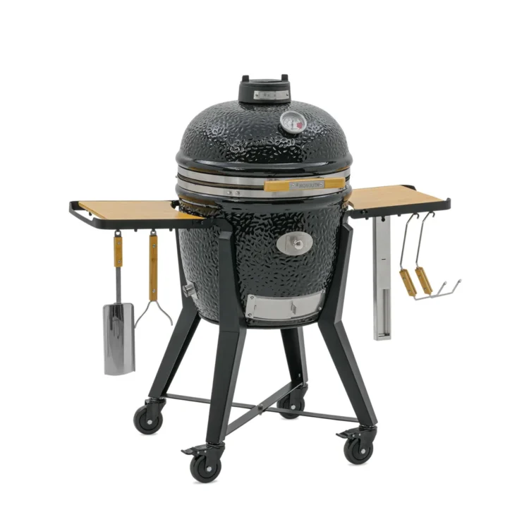De Monolith TWO.55 is een klassieker in een nieuw jasje – Voorheen bekend als de Classic Pro-Serie 2.0, blijft deze kamado het best verkochte model van Monolith. Met een royale roosterdiameter van 44 cm biedt deze kamado meer dan genoeg ruimte om voor het hele gezin te koken. De TWO.55 is standaard uitgerust met het innovatieve Smart Grid System, waarmee je eenvoudig kunt schakelen tussen direct en indirect grillen – of beide tegelijk. Perfect voor wie graag experimenteert met verschillende kooktechnieken. Aan de voorzijde vind je het unieke chip-feeder systeem, waarmee je eenvoudig rookhout of pellets toevoegt aan de gloeiende houtskool, zonder het deksel te openen. De Monolith TWO.55 wordt geleverd met 3 keramische voetjes zodat je hem stevig en stabiel in een buitenkeuken of barbecue tafel kunt plaatsen.
