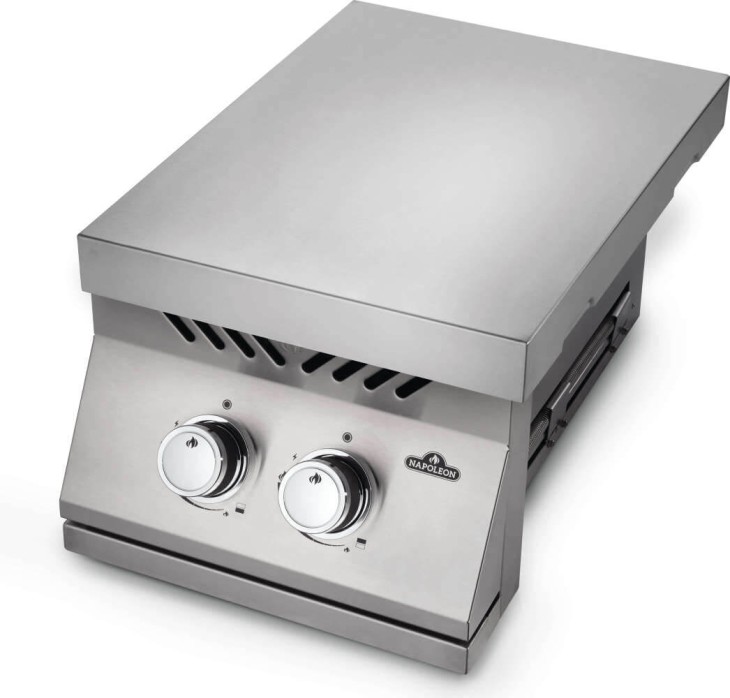 De perfecte aanvulling op je buitenkeuken is deze Napoleon inbouw zijbrander. De zijbrander is gemakkelijk in te bouwen en wordt verzonken in het bovenblad van jouw buitenkeuken. Zo kun je naast je barbecue een saus of marinade maken, een soep opwarmen of wat groentes bakken. Afgewerkt met 7.5 mm dik RVS Wave grillrooster. En met 2.9kW is deze brander zeer krachtig. De brander zelf werkt op flessengas. Maak bijgerechten en sauzen terwijl de hoofdgrill in gebruik is. Ontsteek deze brander met één hand met het elektrische JETFIRE ™ -ontstekingssysteem. De grote, ergonomische NIGHTLIGHT ™ bedieningsknop zorgen voor sfeer en veiligheid. Hij is blauw wanneer de brander niet in gebruik is en gloeit rood op wanneer de brander in gebruik is. De inbouw zijbrander is gemaakt van dezelfde kwaliteit roestvrij staal als de inbouw grills van Napoleon. Dus gegarandeerd een lange levensduur en veel kookplezier.