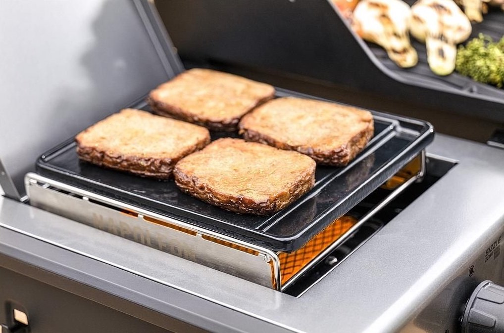 De Sizzle Zone wordt steeds belangrijker in het gebruik van de Napoleon grills. Daarom hebben ze een speciale grillplaat ontwikkeld die perfect bij deze functie past, zodat je het volledige potentieel van de Sizzle Zone benut. Met deze grillplaat kun je moeiteloos diverse gerechten bereiden, je vlees snel dichtschroeien en het vervolgens in de barbecue verder garen. Het meegeleverde frame zorgt voor de perfecte afstand tot de infraroodbrander. Deze grillplaat is geschikt voor alle Freestyle- en Rogue-modellen die zijn uitgerust met een kleine Sizzle Zone.