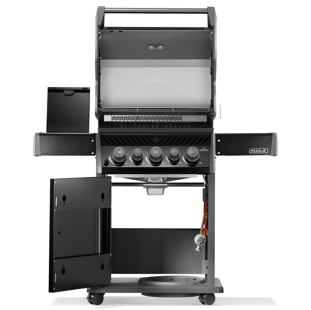 Ben je op zoek naar een kwalitatieve en hoogwaardige gasbarbecue. De Rogue modellen van Napoleon zijn dan de ideale keuze. De Napoleon Rogue RB425RSB is uitgevoerd in zwart staal. De Rogue RB425RSB heeft 3 hoofdbranders een zijbrander en een achterbrander. De Rogue RB425RSB heeft verder alle extra’s die je gewend bent van Napoleon. Zoals 4 zwenkwielen, opbergruimte voor de gasfles en 1 inklapbare zijtafel, die voldoende ruimte bieden voor bereiding van gerechten of wegleggen van hete accessoires. De Napoleon Rogue RB425RSB heeft ook een geïntegreerde thermometer in het deksel, elektrische vonkontsteking (JETFIRE) en gietijzeren WAVE-grillroosters voor een perfect grillresultaat.