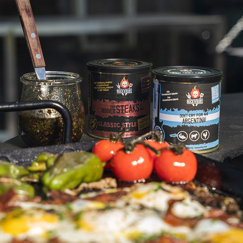 Chimichurri is De typische Zuid-Amerikaanse barbecuesaus en marinade en is perfect voor biefstuk, maar ook voor groenten, gegrilde kaas, vis en gevogelte. Simpelweg 1 eetlepel chimichurri even laten zwellen met 1 eetlepel lauw water en dan mengen met 3 eetlepels goede olijfolie en 1 eetlepel rode wijn of rode wijnazijn. Naar smaak met verse kruiden, uien, chilipeper, knoflook enz. variëren. Kan ook als droge marinade worden gebruikt.