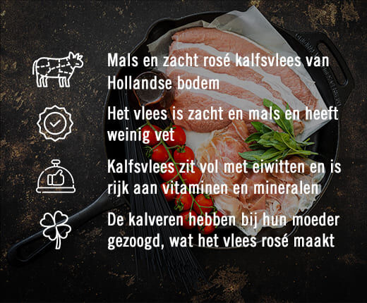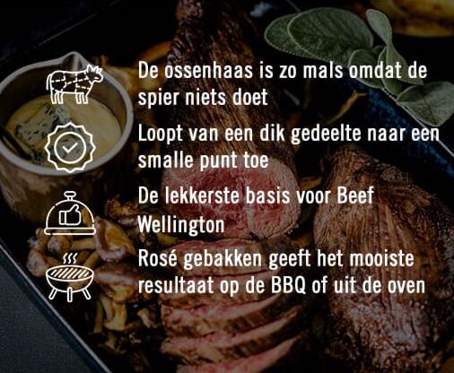 De T-bone bestaat uit een stuk kalfshaas en een stuk kalfsentrecote en is perfect geschikt om te grillen. Het vlees is van zichzelf lekker zacht en kan medium rosé gegeten worden. Het vlees zelf is vrij mager en heeft een subtiele en mooie smaak.