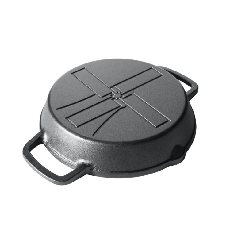 Deze gietijzeren koekenpan is geschikt voor gebruik in de barbecue maar ook op open vuur, steenoven of in de heteluchtoven. De pan is bestand tegen temperaturen tot ongeveer 500 graden Celcius.