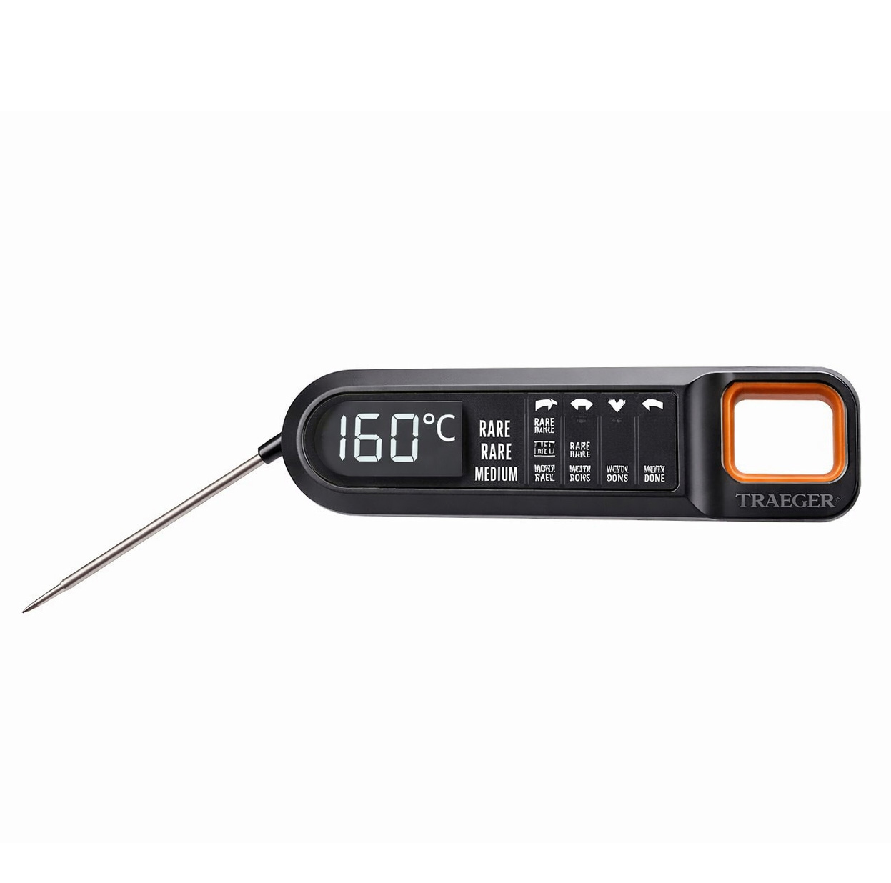 Een goede BBQ draait om één ding: temperatuur. Niet hoe het eruitziet of hoe lang het erop ligt, maar wat er vanbinnen gebeurt. Met de Traeger Instant Read Thermometer meet je de kerntemperatuur in seconden. Even prikken en je ziet direct de juiste temperatuur op het duidelijke, meedraaiende display. Hij is snel (2–3 seconden), makkelijk af te lezen en betrouwbaar tijdens het grillen. Geen poespas, wel een scherpe prijs — en precies wat je nodig hebt om je vlees perfect te garen.